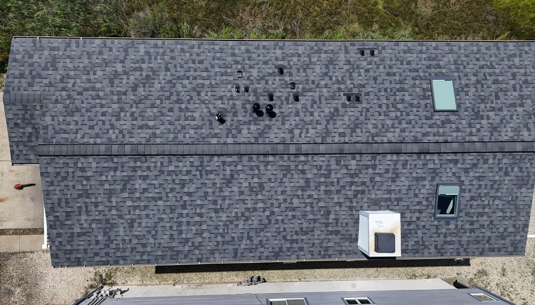 Call us at 609-653-2233 for an inspection, where we check pitch, layers, chimney flashing and skylights.